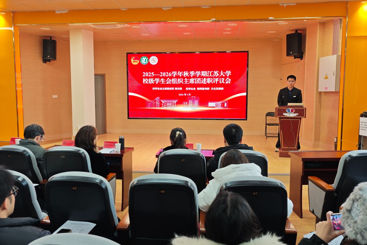 1月8日,江苏大学2025—2026学年秋季学期学生会、研究生会述职评议会在学苑楼305报告厅举行。党委组织部、党委宣传部、国际处、学工处、校团委相关部门负责人出席担任评委,校学生会、研究生会委员会委员代表参加,校级学生会组织主席团成员现场述职。